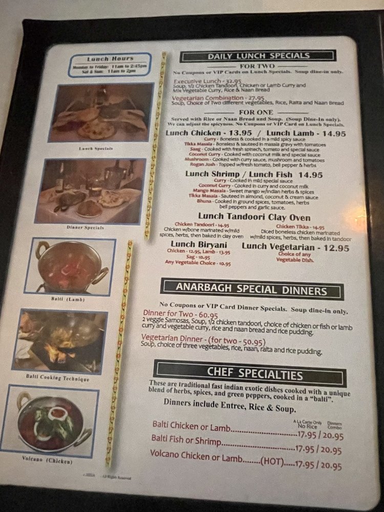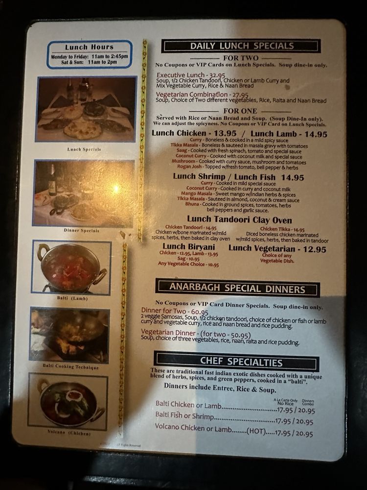 Located in Woodland Hills, CA, Anarbagh Indian Cuisine offers a wide range of utilities for its customers, from reservations to outdoor seating and even catering services. The menu boasts delicious appetizers like Vegetable Samosa and Lamb Samosa, flavorful soups like Mulligatawny Soup, and refreshing salads like Indian Chopped Salad. Customers rave about the attentive service provided by servers like Shahan, who goes above and beyond to ensure a memorable dining experience. The authentic and flavorful dishes, such as Paneer Naan and Chicken Tikka Masala, are highly recommended by patrons. With a welcoming environment and exceptional service, Anarbagh Indian Cuisine is the perfect destination for a satisfying meal.